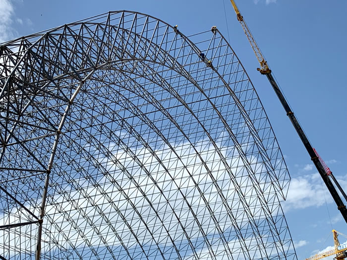 (2)网架加工前应对现场尺寸进行复测,确认无误后方可进行加工、安装;网架制作、运输、安装应遵守《空间网格结构技术规程》JGJ7-2010、《钢网架新泰螺栓球节点》JG/T 10-2009、《钢网架新泰螺栓球节点用高强度螺栓》 GB/T 16939-2016、《新泰钢结构新泰工程新泰施工规范》 GB50755-2012、《新泰钢结构新泰工程施工质量验收标准》 GB50205-2020。